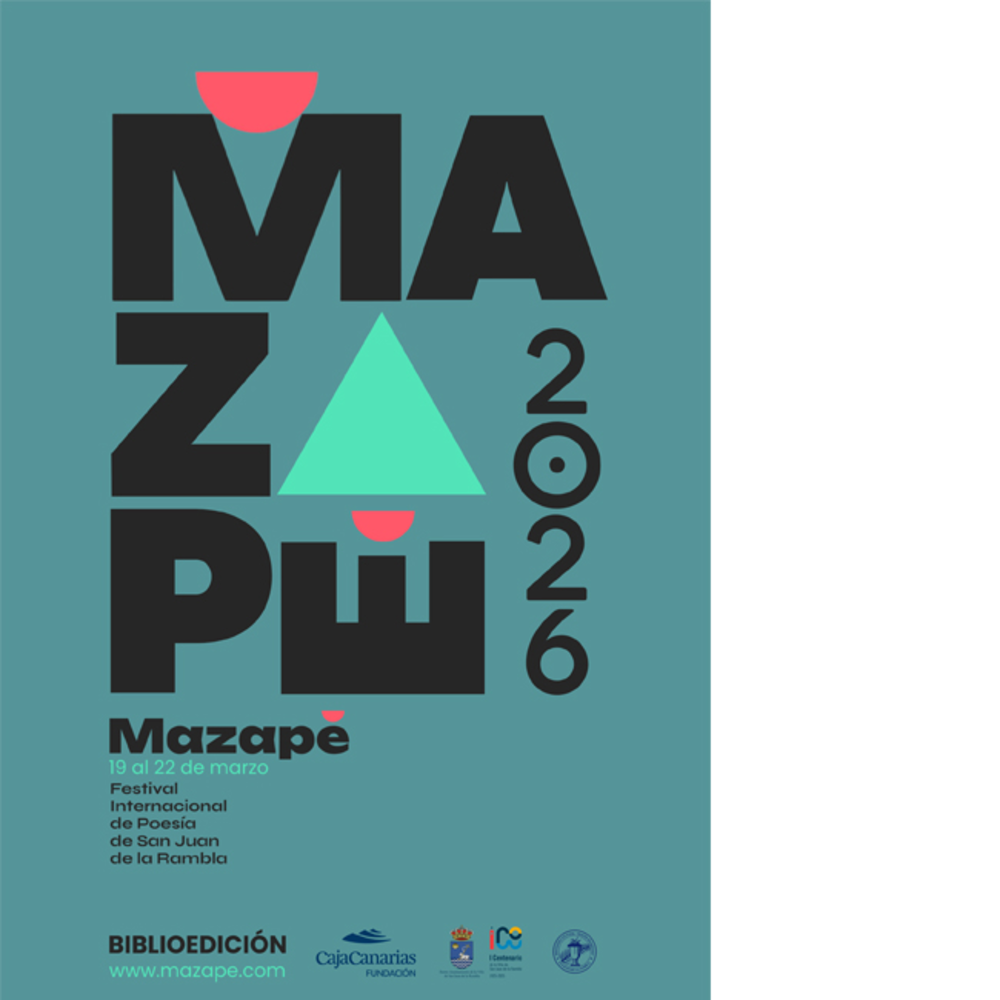 Festival Internacional de Poesía MAZAPÉ 2026 Poesía, cuentos, literatura, talleres, encuentros con autores y actividades afines en la tercera edición de Mazapé, el Festival Internacional de Poesía de San Juan de La Rambla San Juan de la RamblaJue, 19/03/26Vie, 20/03/26Sáb, 21/03/26Dom, 22/03/26Del 19 al 22 de marzoMás información pronto Tags literatura y poesía Info EVENTOS DE LA MISMA CATEGORÍA Experimentos teatrales - Festival Impulso Creativo 2026 Jue 12 Mar, Sáb 14 Mar, Dom 15 Mar, Dom 22 Mar LALA MUSIC 2026 Jue 09 Abr, Vie 10 Abr, Sáb 11 Abr Contra el olvido: democracia, derechos y literatura - primavera en la fundación 2026 abril Mar 07 Abr, Mié 08 Abr Noticias relacionadas contemporánea Mar 13, 2026 by lagendario Cuatro finalistas optan al Premio Ciudad de Santa Cruz de Novela Negra Criminal Tenerife Noir 2026 El Ayuntamiento de Santa Cruz de Tenerife y el Festival Tenerife Noir han dado a conocer las cuatro novelas que optan al Premio Ciudad de Santa Cruz de Tenerife de Novela Negra Criminal 2026. Un galardón que se otorga anualmente a la mejor narrativa del género noir escrita originalmente en español... Leer más contemporánea Mar 13, 2026 by lagendario Abierta la fase de candidaturas para elegir protagonistas para Día de las Letras Canarias y el Día de las Escritoras El Gobierno de Canarias, a través de la Viceconsejería de Cultura y Patrimonio Cultural, invita a academias, centros culturales y de investigación, universidades, ayuntamientos y cabildos insulares, así como a asociaciones empresariales del sector editorial y literario, a presentar candidaturas... Leer más contemporánea Mar 13, 2026 by lagendario Maite Fernández Valderas presenta 'Psicóloga en campaña' tenerife marzo 2026 La psicóloga Maite Fernández Valderas presenta su libro con el título 'Psicóloga en campaña' (Canarias3puntocero Ediciones) los próximos 17 y 18 de marzo, martes y miércoles, en las salas Ámbito Cultural de El Corte Inglés, en la isla de Tenerife, la primera cita, y en Gran Canaria, la segunda.El... Leer más Últimas noticias' humor 16 de Marzo by lagendario La Quedada del Año 2026 tenerife humor abril "La Quedada del Año 2026" se consolida como el mayor festival del humor en Canarias y este 25 de abril se espera, al... Leer más nuevas tecnologías 16 de Marzo by lagendario Tecnológica Santa Cruz se aplaza al mes de mayo tenerife 2026 La decimoquinta edición de Tecnológica Santa Cruz se aplaza debido al avance de la borrasca Therese, la cual se... Leer más banda sonora 16 de Marzo by lagendario Fimucité presenta su 20º Aniversario en Roma tenerife cine marzo 2026 El Festival Internacional de Música de Cine de Tenerife (FIMUCITÉ), el evento de su género más antiguo del mundo, suma una nueva... Leer más