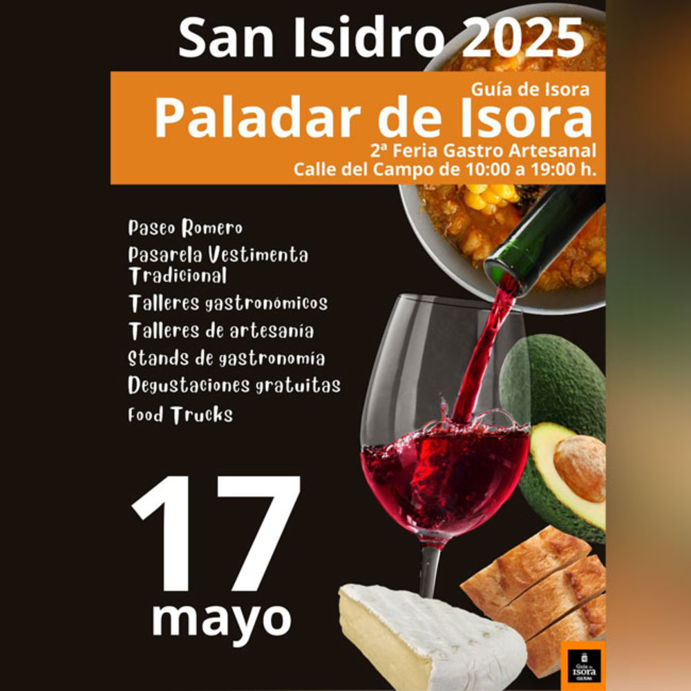 II Paladar de Isora Más de 50 stands de productos locales, artesanía culinaria y food trucks en la II edición de Paladar de Isora en las fiestas de San Isidro de Guía de Isora Guía de IsoraDe 10:00 a 19:00 en la Calle del Campo del casco de Guía de Isora Tags Gastronomia Cultura popular InfoTras el éxito de su primera edición, Paladar de Isora se consolida como una cita imprescindible en el calendario cultural y gastronómico del sur de Tenerife. Este evento ofrece una experiencia única donde tradición, innovación y sabor se dan la mano en un ambiente familiar y festivo.La muestra cuenta con:Talleres gastronómicos y de artesanía para todas las edades.Degustaciones gratuitas.Pasarela de vestimenta tradicional y paseo romero.Música en vivo y actividades culturales. EVENTOS DE LA MISMA CATEGORÍA Instituto del Terror Vie 31 Oct, Sáb 01 Nov, Dom 02 Nov Mercado del Agricultor de Arona Jue 04 Sep, Jue 18 Sep, Jue 02 Oct, Jue 16 Oct, Jue 30 Oct, Jue 13 Nov, Jue 27 Nov, Jue 11 Dic Noticias relacionadas contemporánea Ago 25, 2025 by lagendario Boncho Tour despide el verano en Bajamar agosto 2025 tenerife Boncho Tour de Dorada regresa este próximo 30 de agosto a la localidad costera de Bajamar con la celebración de sexta edición. La cita, con entrada gratuita, dará comienzo a las 14:00 y se prolongará hasta media noche, y volverá a contar con la presencia de alguno de los dj más aclamados en la... Leer más contemporánea Ago 12, 2025 by lagendario Burger Fest Canarias este finde en El Médano tenerife agosto sansofé 2025 Burger Fest Canarias regresa en el verano de 2025 a la plaza de El Médano para dar vida a otro multitudinario evento en el que se darán cita algunos de los mejores djs del circuito canario, contando además, como es habitual, con la presencia de varios de los mejores restaurantes de hamburguesas de... Leer más contemporánea Ago 03, 2025 by lagendario Las buenas 'Sensaciones' y los sabores de verano inundaron la bahía de El Médano tenerife agosto 2025 La plaza central de El Médano acogió una nueva edición de la fiesta gastronómica 'Sensaciones, Sabores de Verano', organizada por la Agencia de Empleo y Desarrollo Local del Ayuntamiento de Granadilla de Abona, cuya responsable es Carmen Delia Mesa Cabrera, en colaboración con el Consejo Regulador... Leer más Últimas noticias' clásica 18 de Octubre by lagendario A fULL con la Sinfónica regresa al Paraninfo la laguna tenerife 2025 2026 A fULL con la Sinfónica es un ciclo de conciertos promovido por la Sinfónica de Tenerife, la Fundación... Leer más popular 18 de Octubre by lagendario Maika Makovski regresa a Canarias con 'Bunker Rococó' tenerife 2025 octubre Maika Makovski, una de las artistas más relevantes y versátiles de la escena musical española, regresa con su nuevo álbum 'Bunker... Leer más fiestas populares 18 de Octubre by lagendario El miedo se instala en La Laguna: llega el Instituto del Terror tenerife octubre 2025 El Instituto Nuryana se transformará del 31 de octubre al 2 de noviembre en el escenario del Instituto del Terror... Leer más