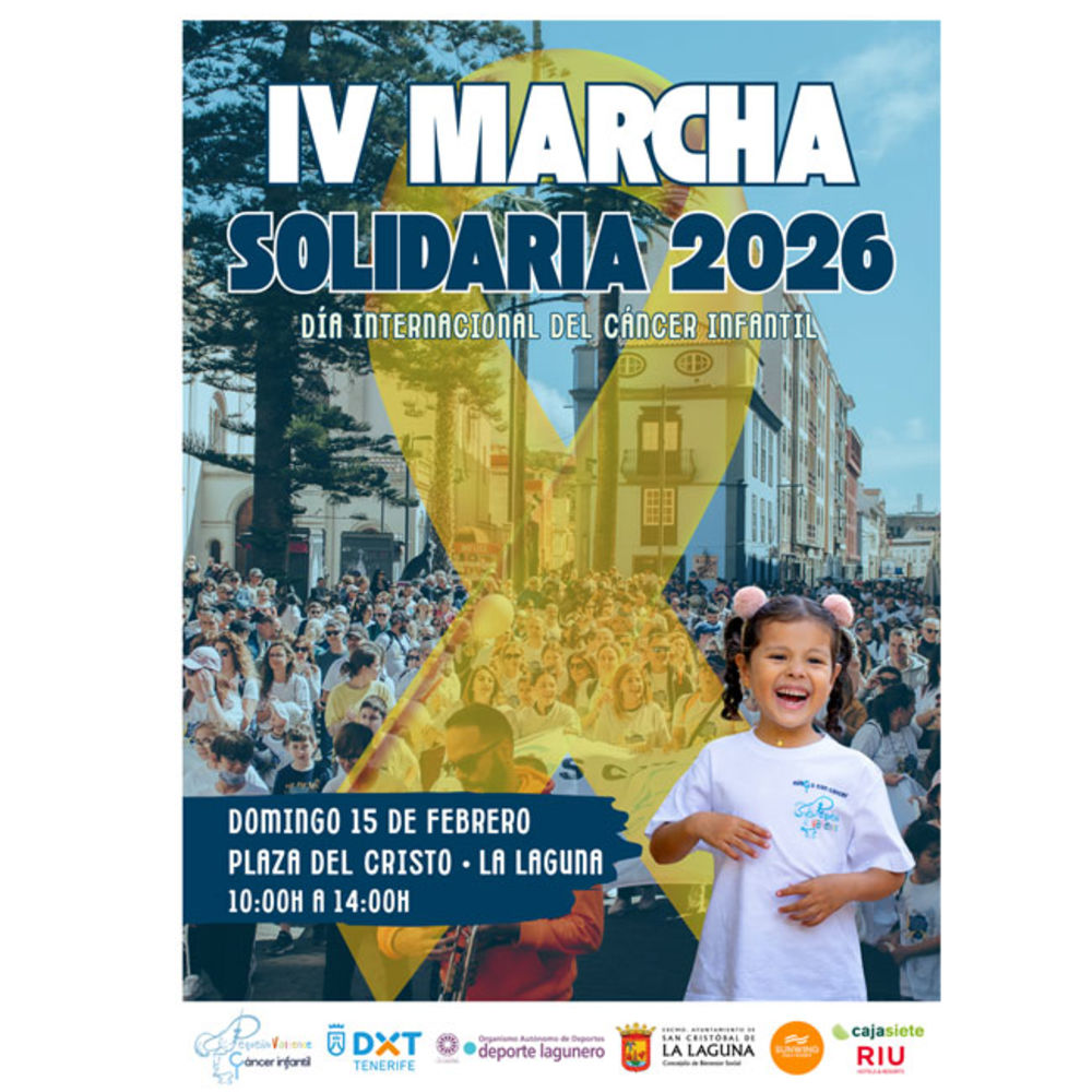 IV Marcha Solidaria Pequeño Valiente IV Marcha Solidaria con motivo del Día Internacional del Cáncer Infantil. Un evento abierto a la ciudadanía que combina una marcha simbólica de aproximadamente 1,5km por el casco histórico de La Laguna con una mañana de actividades lúdico-deportivas. La LagunaDom, 15/02/26De 10:00 a 14:00 en la Plaza del Cristo de La LagunaEnlace de inscripción Tags Cultura Deporte y naturaleza Infantil InfoIncluye actividades previas y posteriores a la marcha, como música en directo, calentamiento colectivo, juegos y espacios de encuentro con el fin de fomentar la participación familiar y crear un ambiente inclusivo y cercano. La asistencia se realiza mediante una aportación simbólica (8 euros) destinada íntegramente a apoyar los servicios que la Fundación ofrece a niños, niñas con cáncer y sus familias.Recorrido: El punto de partida será la Plaza del Cristo. Continuaremos por la Calle Viana y bajaremos por Obispo Rey Redondo hasta llegar a la Plaza del Adelantado, donde bordearemos el Monasterio de Santa Catalina de Siena para regresar por la Calle Viana a la Plaza del Cristo. EVENTOS DE LA MISMA CATEGORÍA Ramón Gener y 'Roméo et Juliette' Mié 11 Mar III Orotaku Fest Sáb 07 Feb Orienta Café 2026 Lun 23 Mar, Mar 07 Abr, Lun 13 Abr EVENTOS MISMO LUGAR Candlelight: Anillos y Dragones Sáb 20 Sep, Sáb 25 Oct, Vie 05 Dic, Sáb 10 Ene, Vie 27 Feb Arde Bogotá Sáb 01 Ago Candlelight: Coldplay vs. Imagine Dragons Sáb 30 Ago, Vie 26 Sep, Sáb 10 Ene, Sáb 07 Feb Noticias relacionadas contemporánea Feb 03, 2026 by lagendario '¡Esto es Histórico!': Cuando la Historia vuelve a contarse en la Plaza de La Constitución Orotava marzo 2026 La Historia no siempre vive en los legajos, libros polvorientos ni en las vitrinas de los museos. A veces baja a la plaza, al Foro, se sienta a conversar, se deja hojear y escuchar. Eso es lo que vuelve a ocurrir en La Orotava con la llegada de la IV edición del festival literario y de divulgación... Leer más contemporánea Feb 03, 2026 by lagendario La Fundación CajaCanarias entrega los galardones de sus Premios 2025 tenerife enero 2026 La Fundación CajaCanarias hizo entrega hoy viernes, 30 de enero, de los galardones de sus Premios 2025 en un acto desarrollado en su Espacio Cultural de Santa Cruz de Tenerife. La presente edición ha comprendido un total de nueve categorías, entre las que destacan algunos de los certámenes más... Leer más contemporánea Feb 02, 2026 by lagendario Tenerife Noir 2026 marzo El Festival Atlántico del Género Negro Tenerife Noir celebrará su undécima edición del 4 al 15 de marzo de 2026, reafirmando su condición de espacio de reflexión cultural en torno al noir, el crimen y sus múltiples expresiones contemporáneas en la literatura, el cine, el cómic y el pensamiento... Leer más Últimas noticias' literatura y poesía 3 de Febrero by lagendario '¡Esto es Histórico!': Cuando la Historia vuelve a contarse en la Plaza de La Constitución Orotava marzo 2026 La Historia no siempre vive en los legajos, libros polvorientos ni en las vitrinas de los museos. A veces baja a la plaza, al Foro, se sienta a... Leer más dance 3 de Febrero by lagendario Nómadas apuesta en 2026 por la cultura de club El próximo viernes 6 de febrero el club El Nido, en Papagayo Tenerife, se convertirá en el epicentro de una... Leer más teatro 3 de Febrero by lagendario Entradas agotadas para 'Las Apariciones' teatro tenerife febrero 2026 Auditorio de Tenerife programa en La Salita... Leer más